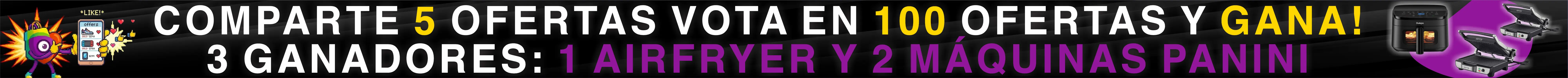 GUIA DE LA DÍNAMICA: Gana una air fryer o una de las dos sanducheras Panini Estar registrado en la web de www.ofertu.co Dale like a 100 ofertas, LAS QUE MAS...